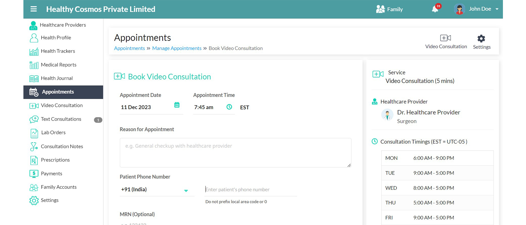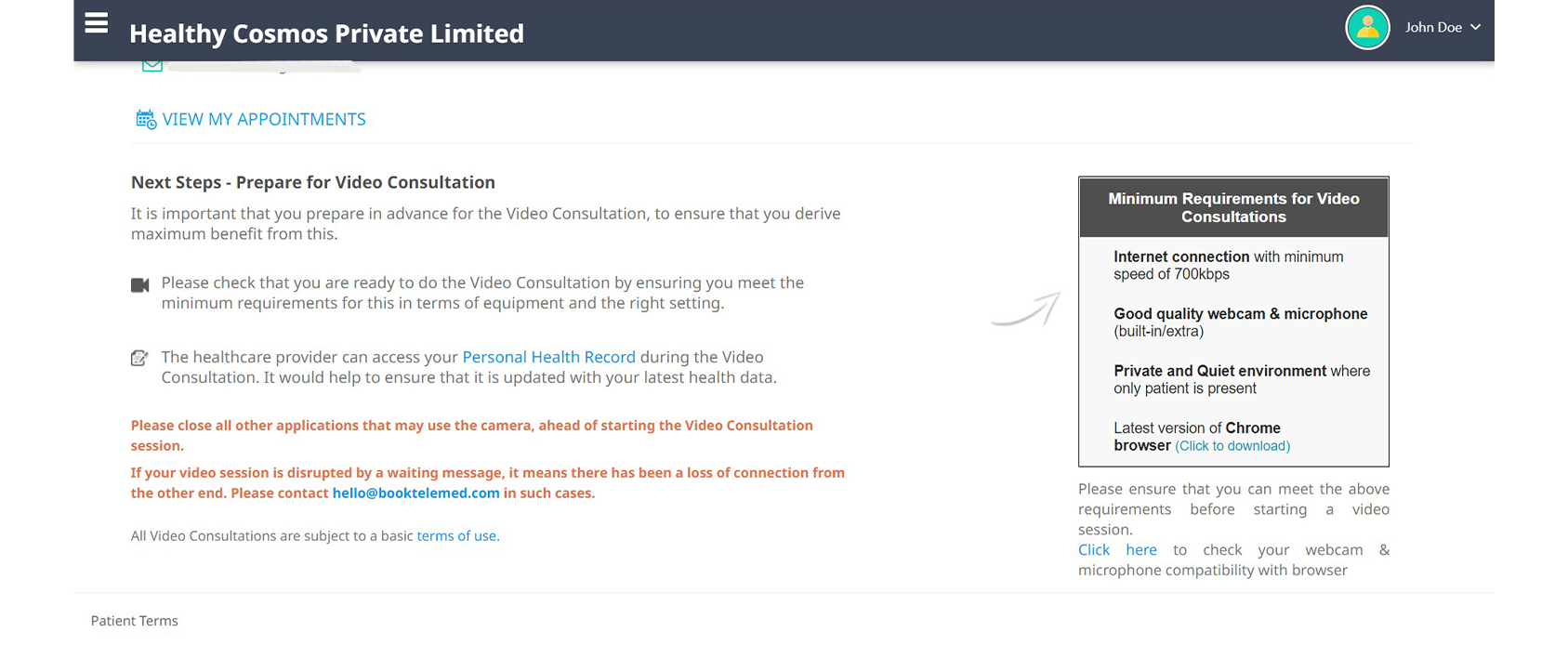 - Once an appointment is confirmed by the doctor and patient, a video consultation cannot be rescheduled by either of them.
