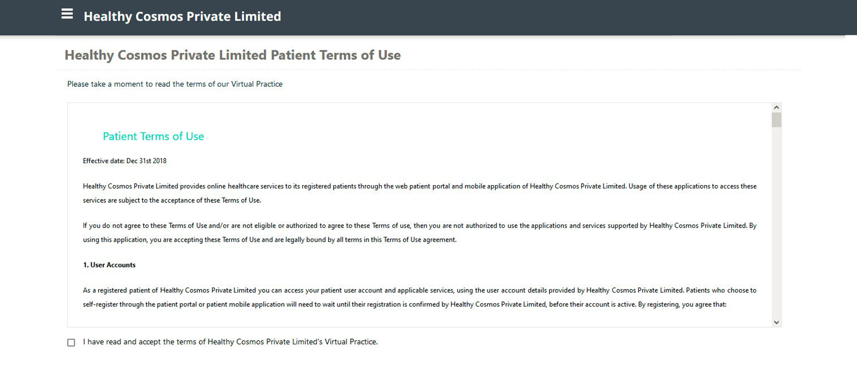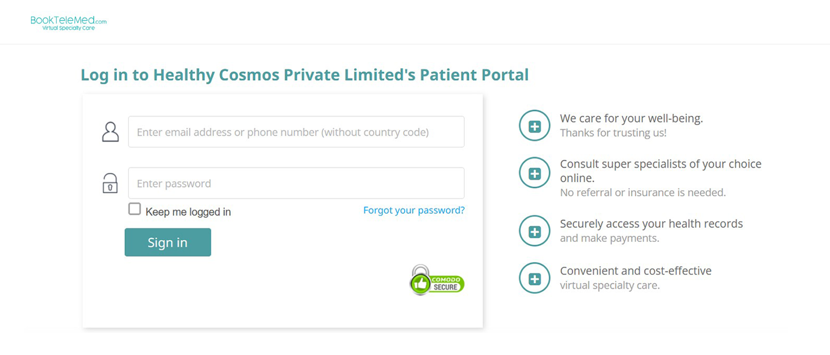 Congratulations! At this point, the patient registration process has been successfully completed and you can login to the patient portal https://patients.booktelemed.com anytime to upload/mange your health records, book your appointments and make secure payments.
